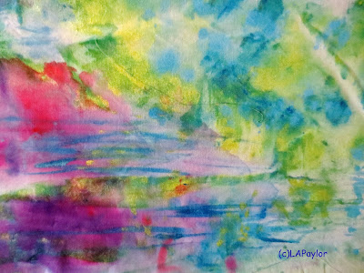 The pigment did not want to travel like usual on the wet fabric. I've painted so much on all media but never had it mostly sit still where I drop it.